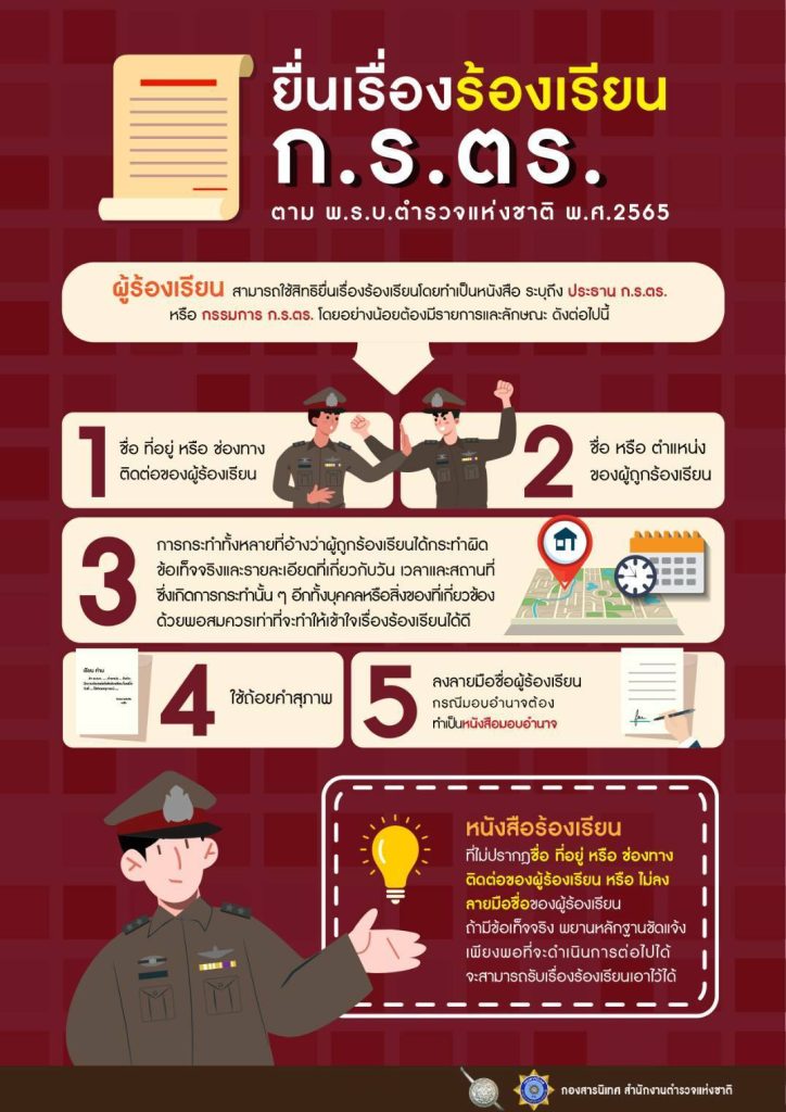 ทำได้โดยยื่นโดยตรง หรือ ส่งจดหมาย ระบุถึง “ประธาน ก.ร.ตร.” หรือ “กรรมการ ก.ร.ตร.”