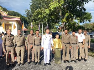 วันนีั(5 ธ.ค.2566) เวลา 07.00 น. พ.ต.อ.กิตติศักดิ์ รามสวัสดิ์ ผกก.สภ.ขนอม พร้อมด้วยคุณกนกวรรณ ขนอม ภริยา พ.ต.ท.สมเชิญ ทองใหญ่ รอง ผกก.สภ.ขนอม พร้อมด้วย ขรก.ตร.สภ.ขนอม และครอบครัว มาร่วมกิจกรรมวันคล้ายวันพระราชสมภพพระบาทสมเด็จพระปรมินทรมหาภูมิพลอดุลยเดชมหาราช ฯ ณ พระอุโบสถ วัดสุวรรณบรรพต ถนนอัครวิถี หมู่ที่ 3 ต.ขนอม อ.ขนอม จ จว.นครศรีธรรมราช โดยมีพระครูสุนทรพจนบัณฑิต เจ้าคณะอำเภอขนอม เป็นประธานฝ่ายสงฆ์ นายสุนทร โพชสาลี ปลัดอำเภอ เจ้าพนักงานปกครอง ฯ รรท.นายอำเภอขนอม เป็นประธานในพิธี มีกิจกรรมร่วมทำบุญตักบาตร ข้าวสาร อาหารแห้ง ต่าง ๆ มีประชาชนในพื้นที่ ข้าราชการทุกภาคส่วนมาร่วมงานจำนวนมาก