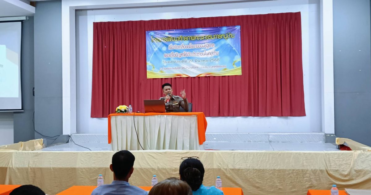 สภ.ขนอม วันที่ ๒๗ มีนาคม ๒๕๖๘ เวลา ๐๘.๐๐ น. ภายใต้การอำนวยการของ พ.ต.อ.กิตติพงศ์ เทพหนู ผกก.สภ.ขนอม มอบหมายให้ พ.ต.ท.กงกฤช ทองนุ่น รอง ผกก ป. สภ.ขนอม พร้อมด้วยครูฝึก ของ สภ.ฯ และ กำลังเจ้าหน้าที่ตำรวจ สภ.ขนอม ร่วมบรรยายให้ความรู้และฝึกอบรมยุทธวิธี ต่าง ฯ ให้กับผู้นำท้องถิ่นในพื้นที่ อ.ขนอม ตามโครงการพัฒนาศักยภาพคณะกรรมการหมู่บ้าน มีผู้เข้ารับการอบรมจำนวน ๙๐ คน ณ โรงแรมขนอมซันไรส์ ม.๗ ต.ขนอม อ.ขนอม จ.นครศรีธรรมราช