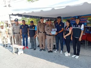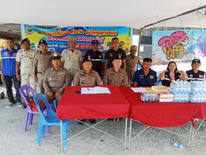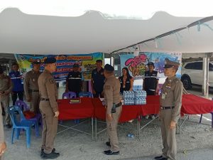 พร้อมที้งนี้ได้มอบ น้ำดื่มและเครื่องดื่มชูกำลัง แก่เจ้าหน้าที่ซึ่งปฏิบัติหน้าที่ประจำจุดตรวจบริการ