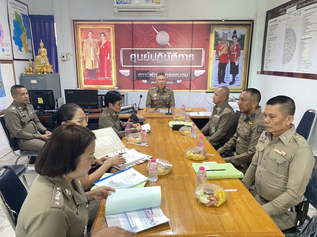 สภ.ขนอม วันที่ 1 เมษายน 2567 เวลา 08.30 น. พ.ต.อ.เกรียงศักดิ์ นุ่นเกลี้ยง รอง ผบก.ภ.จว.นศ. มอบหมายให้ พ.ต.ท.หญิง สำรวย ศรีทองฉิม รอง ผกก.ฝอ.ฯ รรท.ผกก.ฝอ.ภ.จว.นครศรีธรรมราช พร้อมคณะกรรมการตรวจประเมินโครงการบ้านพักน่าอยู่ ภ.จว.นศ.ปี 2567 เดินทางมาตรวจประเมินบ้านพักข้าราชการ ตร.สภ.ขนอม พบ พ.ต.อ.กิตติศักดิ์ รามสวัสดิ์ ผกก.สภ.ขนอม ,พ.ต.ท.นิกร แก้วเนิน สวปฯ ,พ.ต.ท.หญิง ธัญนภัทร์ ร่างสง่า สว.อก.ฯ ,พ.ต.ต.กิจเกษม แก่นแก้ว สวป.(ชส.)ฯและข้าราชการตร.สภ.ขนอม ให้การต้อบรับ มีการดำเนินการตามหัวข้อการตรวจ พร้อมทั้งได้ชี้แจงปัญหาอุปสรรค และได้รับคำแนะนำจากคณะกรรมการฯ การตรวจประเมินเป็นไปด้วยความเรียบร้อย