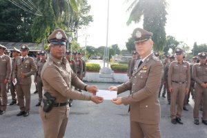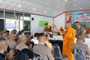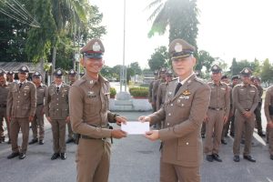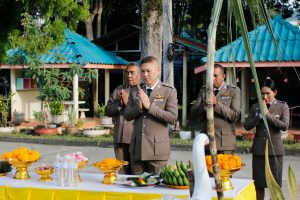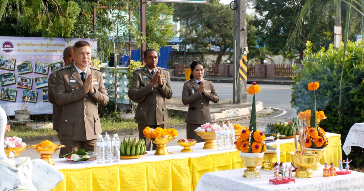 สภ.ขนอม วันที่ 17 ต.ค. 66 เวลา 07.20 – 11.30 น. พ.ต.อ.กิตติศักดิ์ รามสวัสดิ์ ผกก.สภ.ขนอม ประธานในพิธี พร้อมด้วย รอง ผกก.ฯ ,สว.ฯ และข้าราชการตำรวจสภ.ขนอม ร่วมพิธีเนื่องใน “วันสถาปนาสำนักงานตำรวจแห่งชาติ” 17 ตุลาคม ของทุกปี มีรายละเอียดดังนี้ ร่วมพิธีสักการะสิ่งศักดิ์สิทธิ์ ภูมิเจ้าที่ ,เข้าแถวเคารพธงชาติชาติ ,ร่วมพิธีถวายสัตย์ปฏิญาณ พิธีอ่านสาร ผบ.ตร. ,มอบทุนสหกรณ์ออมทรัพย์ ,มอบประกาศเกียรติคุณแก่ข้าราชการตำรวจผู้ประพฤติดีเยี่ยม ,พิธีสงฆ์ และร่วมรับประทานอาหารกลางวัน เพื่อเสริมสร้างภาพลักษณ์ที่ดี และเป็นสิริมงคลแก่หน่วยงานและข้าราชการตำรวจ ณ ที่ทำการ สภ.ขนอม