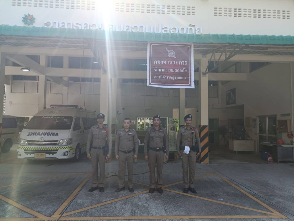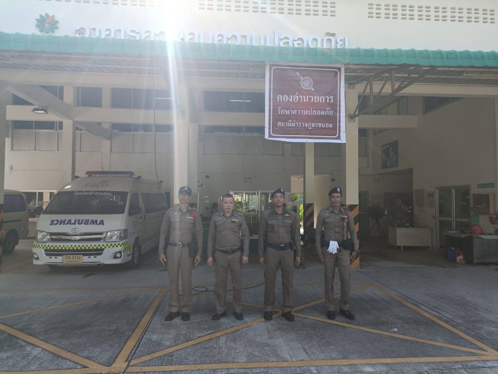 พ.ต.อ.สุทัศน์ สงสยม รอง ผบก.ภ.จว.นครศรีธรรมราช ,พ.ต.อ.กิตติศักดิ์ รามสวัสดิ์ ผกก.สภ.ขนอม ,พ.ต.ท.ปฏิภาณ ไชยรักษ์ รอง ผกก.ป.สภ.ขนอม ,พ.ต.ท.รณภพ รำเพยเพชร รอง ผกก.สส.สภ.ขนอม ,พ.ต.ท.นิกร แก้วเนิน สวป.สภ.ขนอม และจนท.ตำรวจ สภ.ขนอม ร่วมรักษาความปลอดภัยและอำนวยความสะดวก