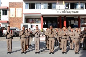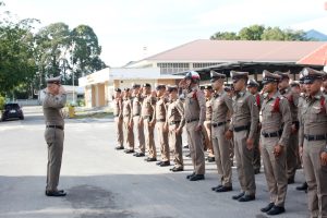 สภ.ขนอม วันที่ ๗ พฤศจิกายน ๒๕๖๖ เวลา ๐๘.๐๐ น. พ.ต.อ.กิตติศักดิ์ รามสวัสดิ์ ผกก.สภ.ขนอม พร้อมหัวหน้างานทุกแผนกงาน ได้เรียกแถวข้าราชการตำรวจ สภ.ขนอม มาเพื่อเข้าแถวเคารพธงชาติ สวดมนต์ไหว้พระ กล่าวอุดมคติและบทปลงใจ รวมทั้งได้ตรวจสอบความพร้อมอุปกรณ์ เครื่องแต่งกาย ระเบียบทรงผม ที่ถูกต้องตามระเบียบของ ตร. และได้มอบนโยบายและชี้แจงภารกิจในการปฏิบัติหน้าที่ แก่ข้าราชการตำรวจทุกแผนกงาน รวมทั้งสอบถาม ถึงปัญหาอุปสรรคต่าง ๆ ในการปฏิบัติหน้าที่ และการพบปะพูดคุยเกี่ยวกับข้อกฎหมาย ข้อสั่งการและระเบียบการปฏิบัติ จากหัวหน้าแผนกงานแต่ละงาน และการสอบถามถึงปัญหาอุปสรรคพร้อมแนวทางการแก่ไขปัญหา ก่อนการแยกย้ายออกปฏิบัติหน้าที่
